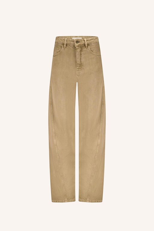 De 5-pocket broek komt in een beige kleur, heeft een rechte pasvorm, is enkellang en draagt erg comfortabel door de hoge tailleband.