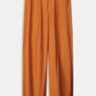 De broek komt in een oranje kleur, heeft wijde pijpen met plooitjes, gekruiste riemlussen aan de voorzijde en is gemaakt van een luchtige stof, waardoor het een perfect item is voor de warme dagen.