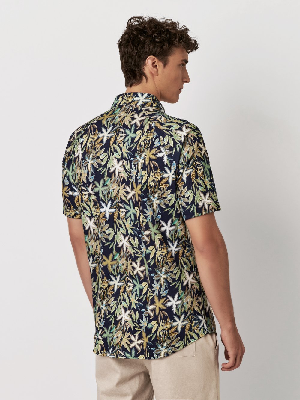 Overhemd DESOTO KM kent 1/2 palm trees on navy